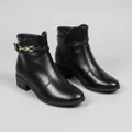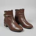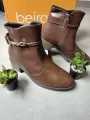 Bota de couro com zíper lateral e elegante detalhe de fivela. Conforto o dia inteiro com salto bloco estável e palmilha acolchoada. Costuras reforçadas e solado antiderrapante garantem durabilidade e segurança em cada passo. Combina com jeans, saia ou vestido, criando looks casuais ou sofisticados. Perfeita para trabalho, passeios e encontros.